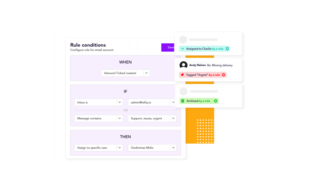Automating live chats from agents will take over the service of recurring queries, refer potential customers to the sales team, or create a query in the Tellq system. Serve customers even more efficiently!